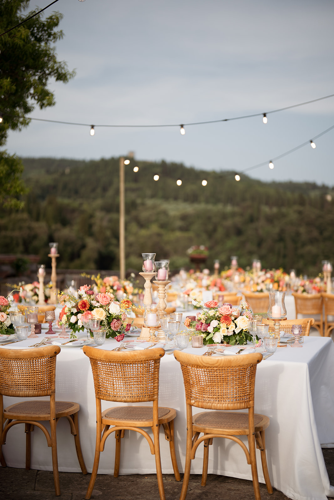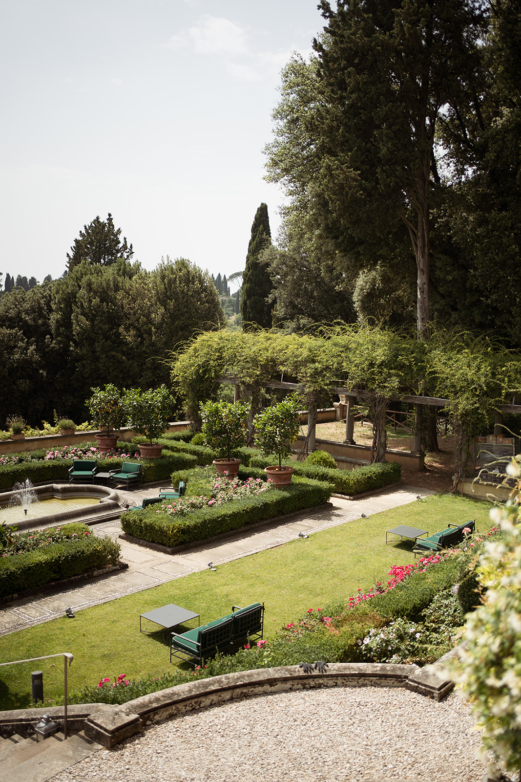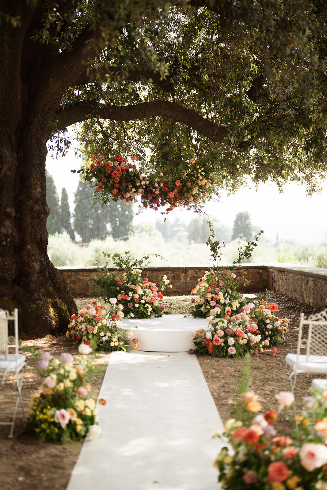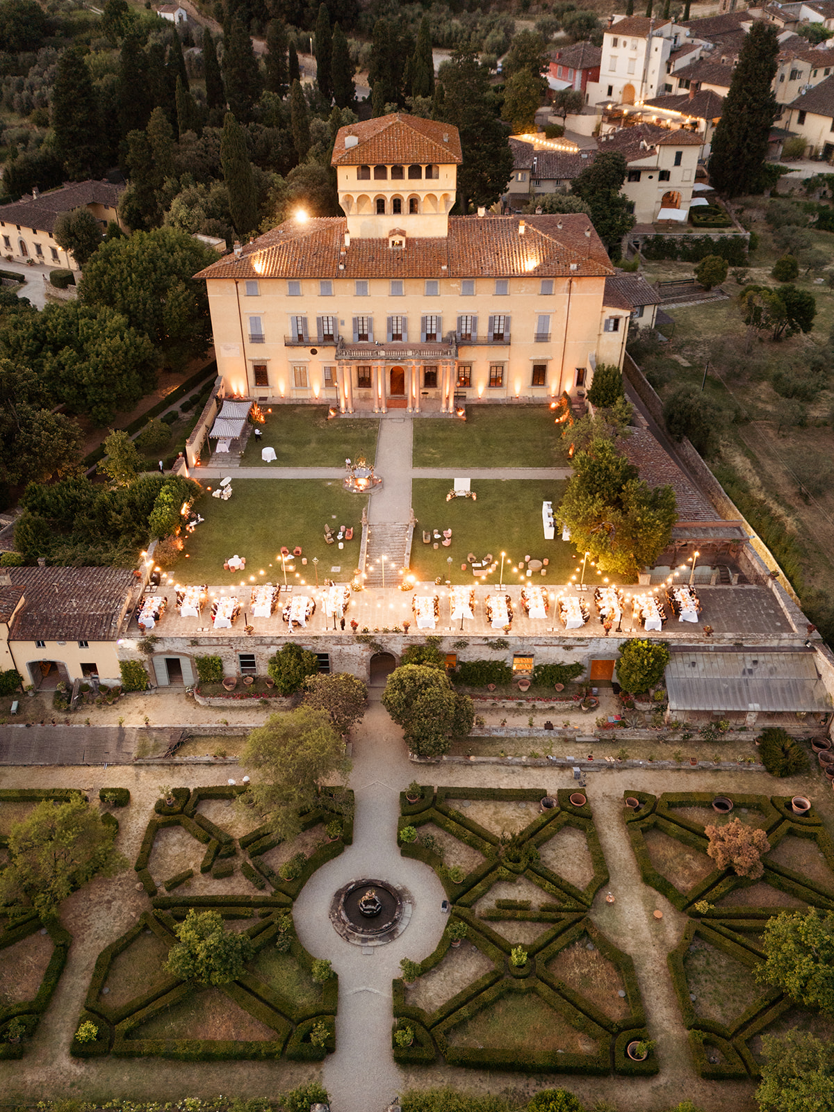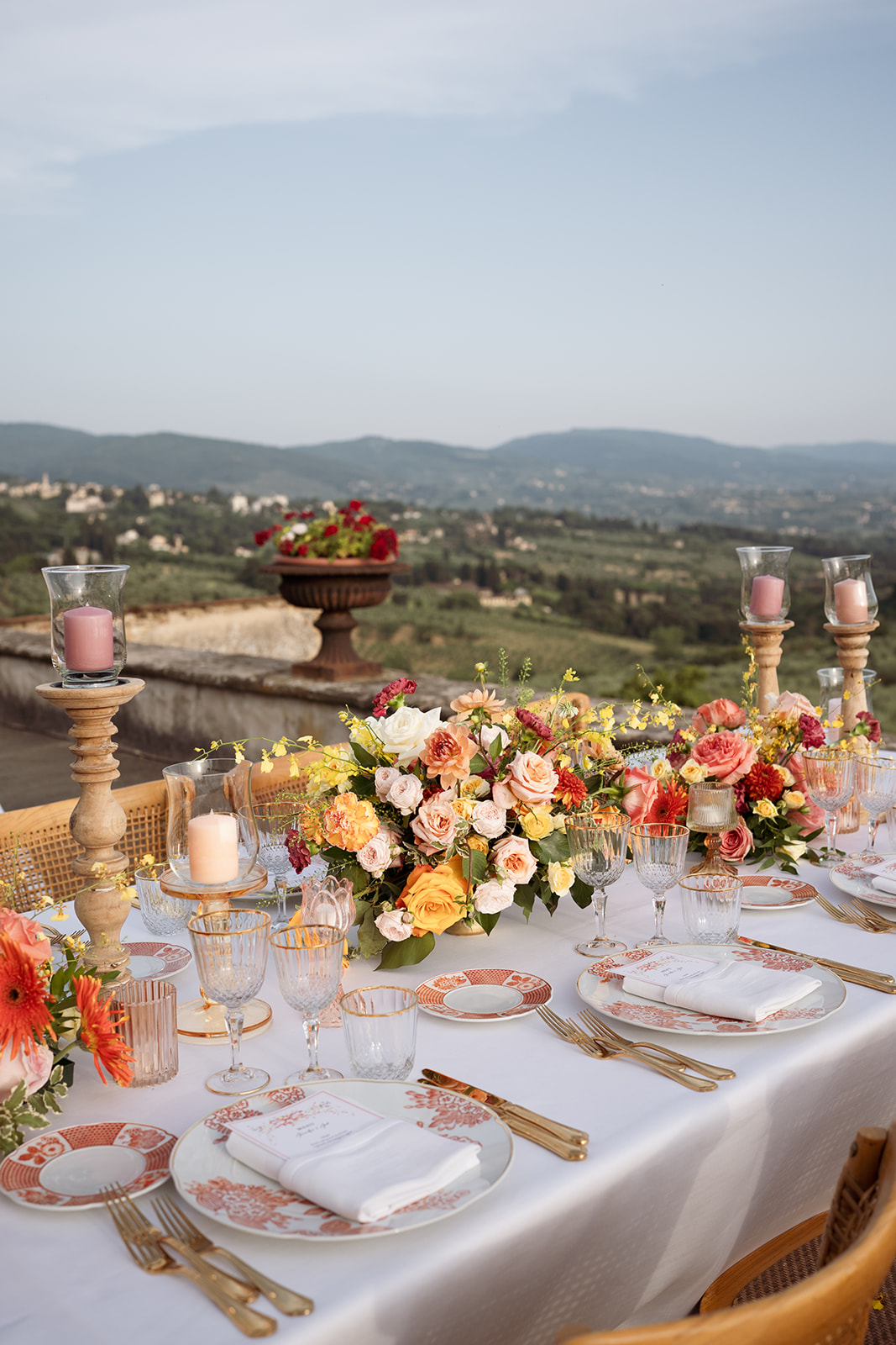 Perched above Florence with sweeping views of the Tuscan hills, Villa di Maiano set the stage for a radiant summer cele-bration.